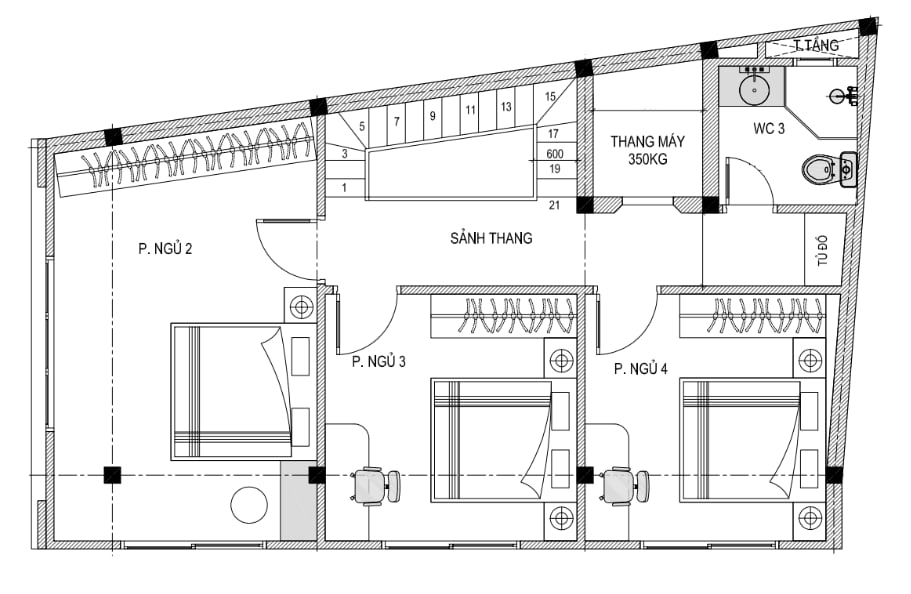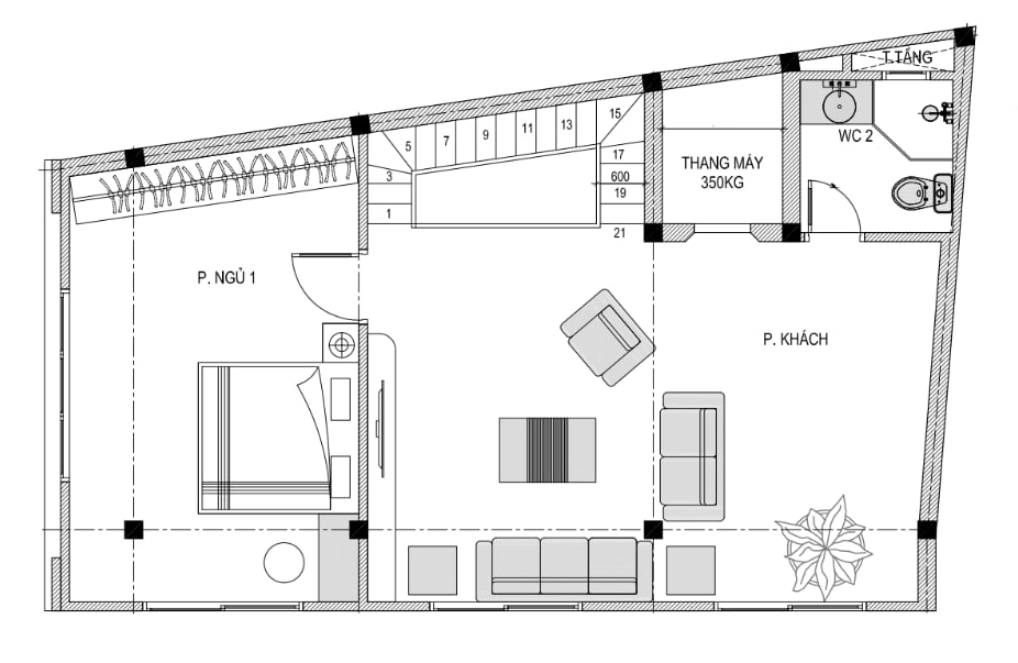 + Tầng 2: Phòng khách + Phòng ngủ + WC