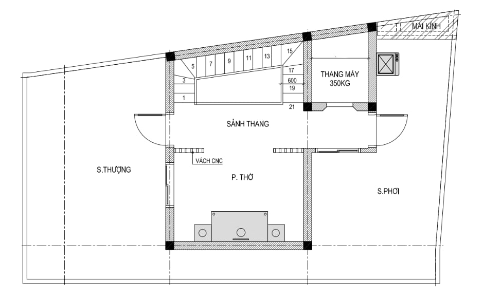 + Tầng tum: Phòng thờ+ Sân phơi
