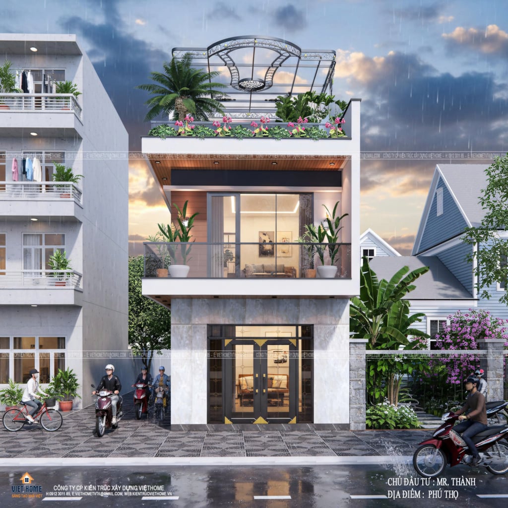 Mẫu Nhà Phố 2 Tầng 1 tum Đẹp - Thiết Kế Hiện Đại Kết Hợp Không Gian Xanh - CĐT: Mr Thành - Phú Thọ