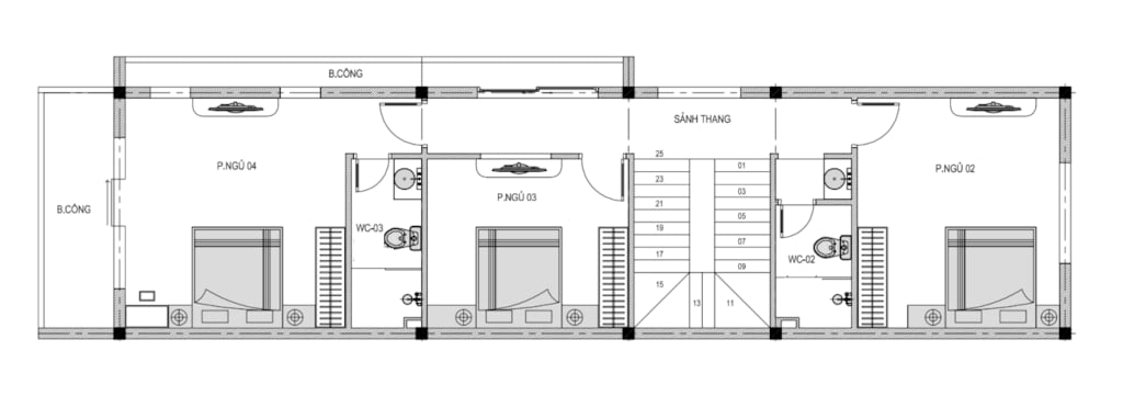 + Tầng 2: Phòng ngủ master + 2 Phòng ngủ + 1 WC