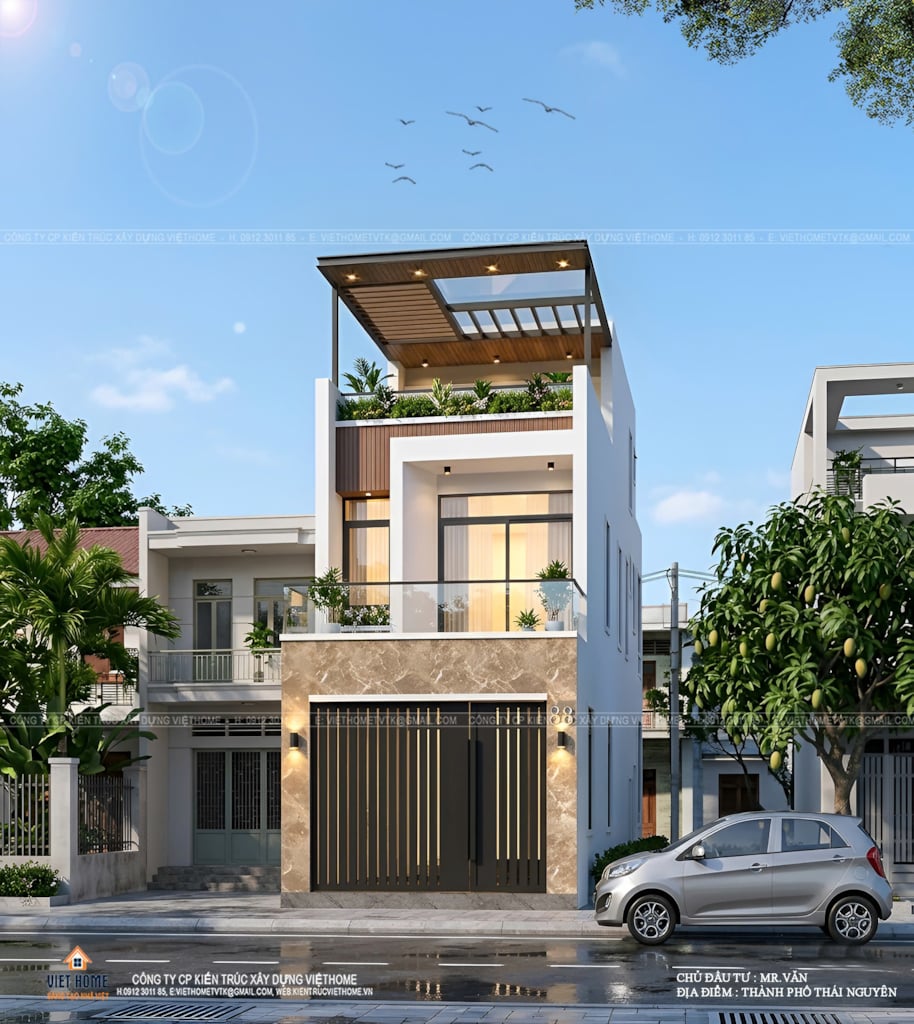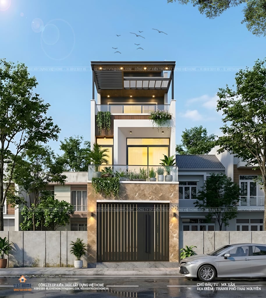 Mẫu nhà phố 2 tầng 1 tum hiện đại - Giải pháp sống xanh giữa đô thị - CĐT: Mr Văn , Thái Nguyên
