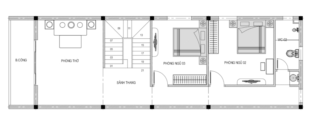 + Tầng 2: Phòng thờ + 2 Phòng ngủ + 1 WC