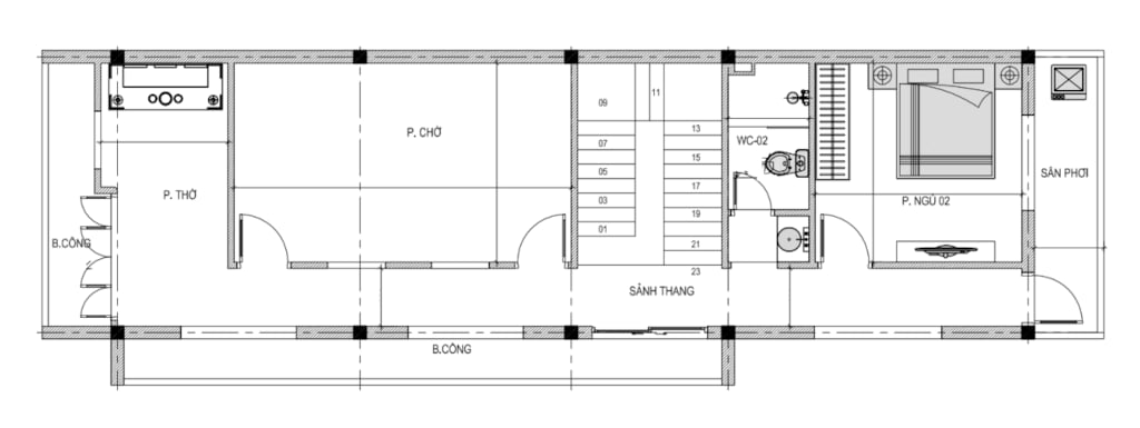 + Tầng 2: Phòng thờ + Phòng chờ + Phòng ngủ thường + 1 WC