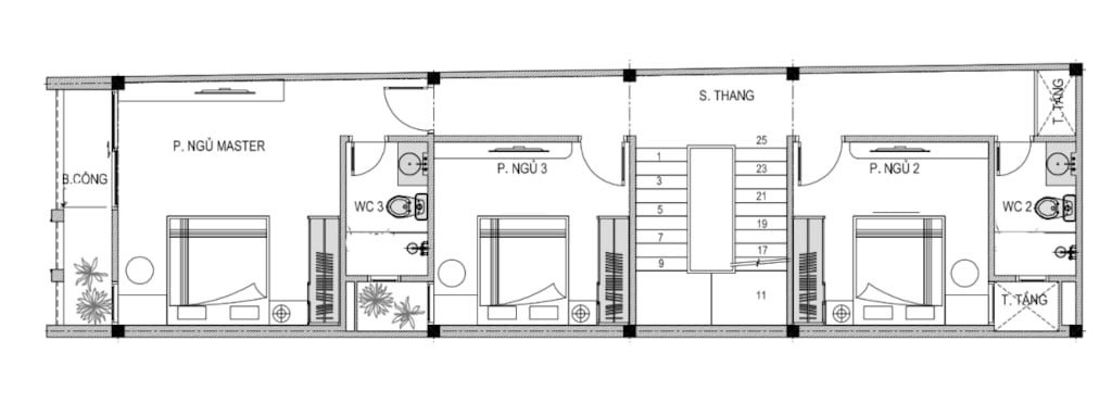 + Tầng 2: Phòng ngủ master + 2 Phòng ngủ + WC