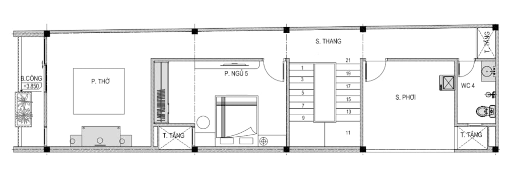 + Tầng 3: Phòng thờ + Phòng ngủ + WC + Sân phơi