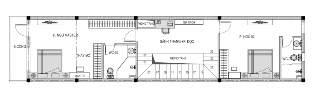 + Tầng 2: Phòng ngủ master + Phòng ngủ khép kín