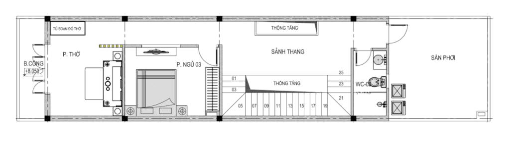 + Tầng 3: Phòng thờ + Phòng ngủ + Sân Phơi + WC