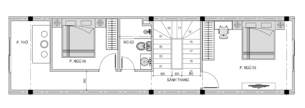 + Tầng 3: Phòng thờ + 2 Phòng ngủ thường + 1 WC
