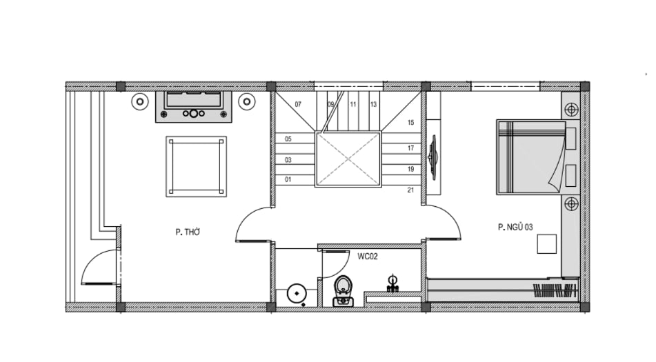 + Tầng 3: Phòng thờ + 1 Phòng ngủ
