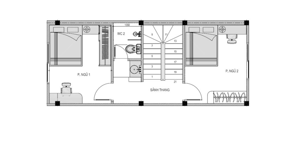+ Tầng 2, 3: 2 Phòng ngủ + WC