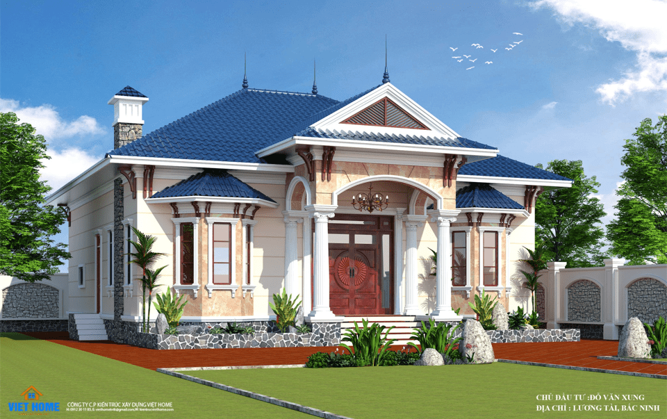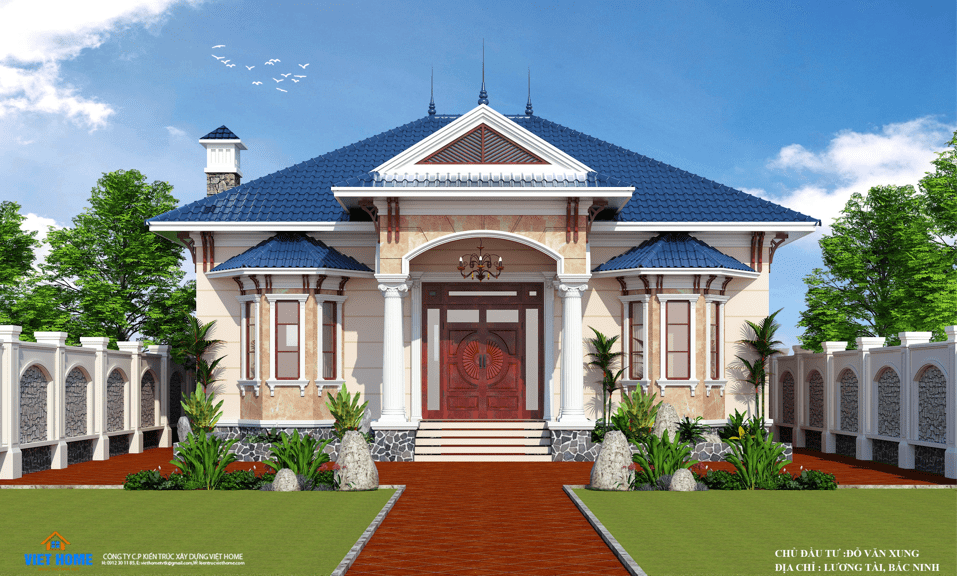 Mẫu nhà vườn mái Nhật được Việt Home thiết kế cho gia đình anh Xung tại Lương Tài, Bắc Ninh là sự kết hợp hài hòa giữa lối kiến trúc hiện đại và tân cổ điển. Công trình được đặt trong khuôn viên đất rộng rãi với vườn thoáng đãng tạo ra không gian sống thư giãn đầy lý tưởng cho các thành viên gia đình. Mời quý vị hãy cùng ngắm nhìn kỹ hơn thiết kế này.