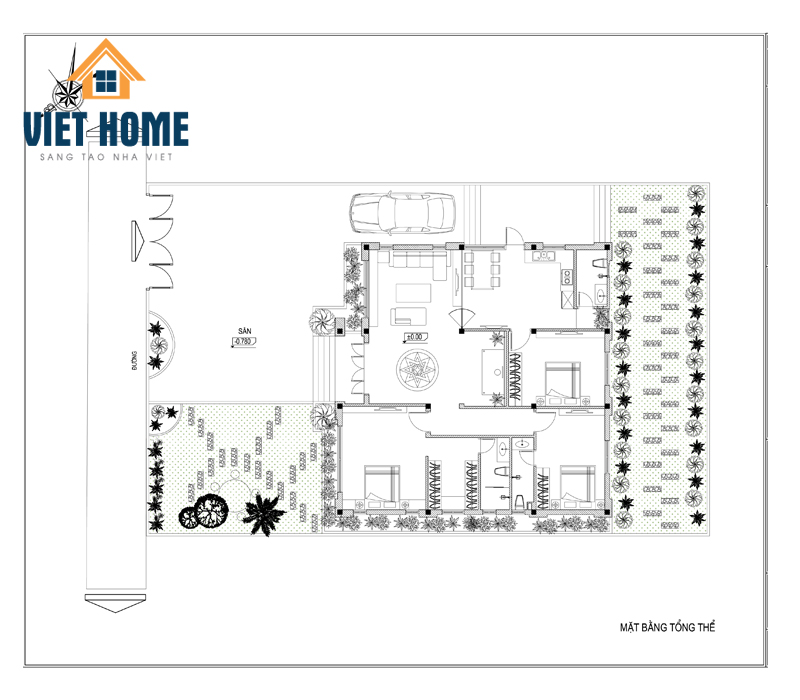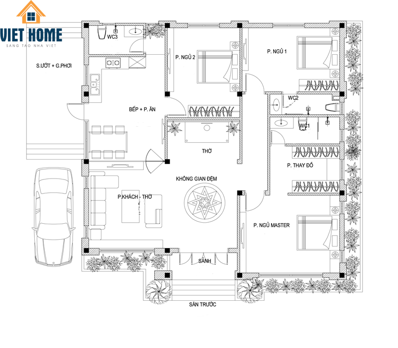 - Công năng: Phòng khách + phòng thờ + 3 phòng ngủ + 2wc+ phòng thay đồ