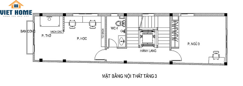 - Tầng 3: Ban công, Phòng Thờ, Phòng Học, 1 Phòng ngủ, 1 WC