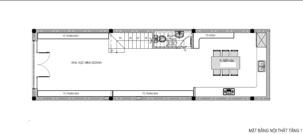 + Tầng 1: Khu vực kinh doanh + WC + Bếp