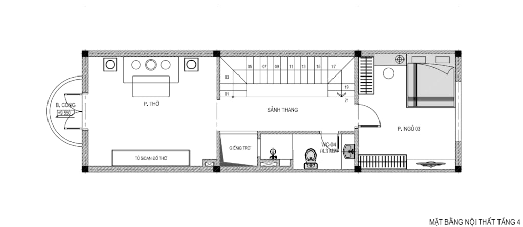 + Tầng 4: Phòng thờ + 1 Phòng ngủ + WC