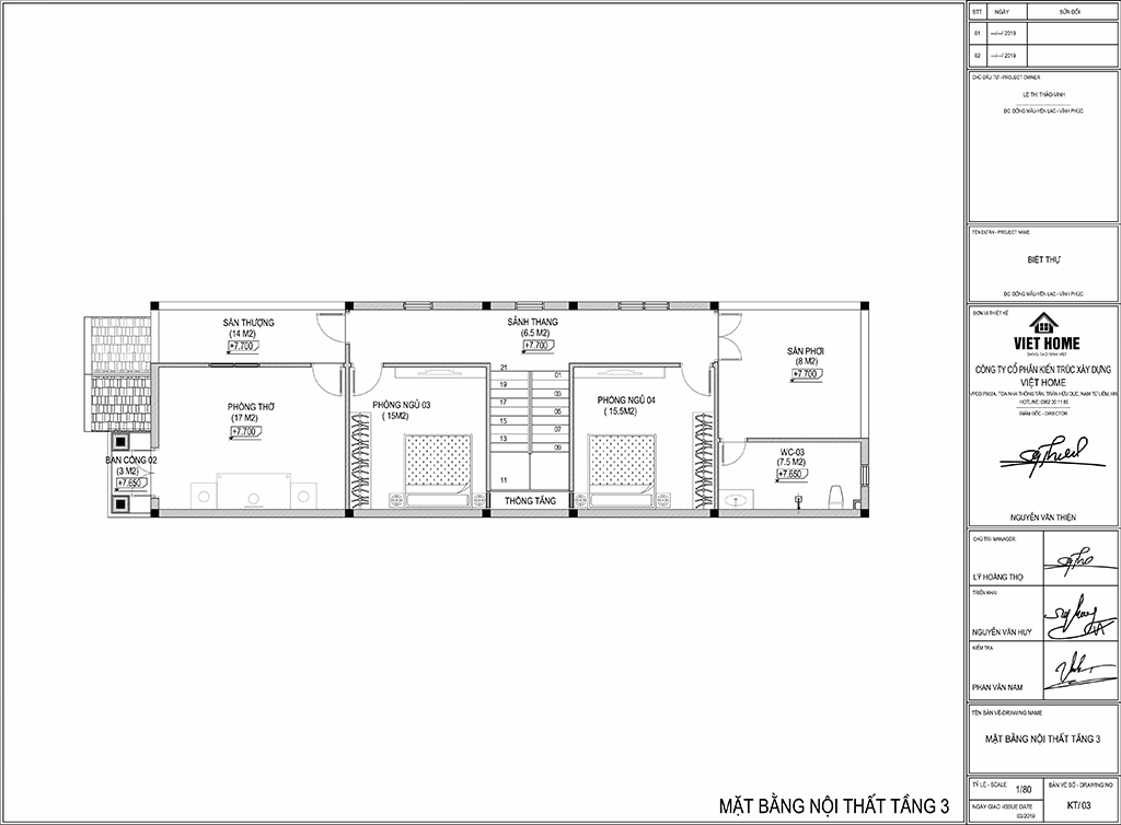 Thiết kế nhà phố 3 tầng mái thái chị Thảo- Vĩnh Phúc
