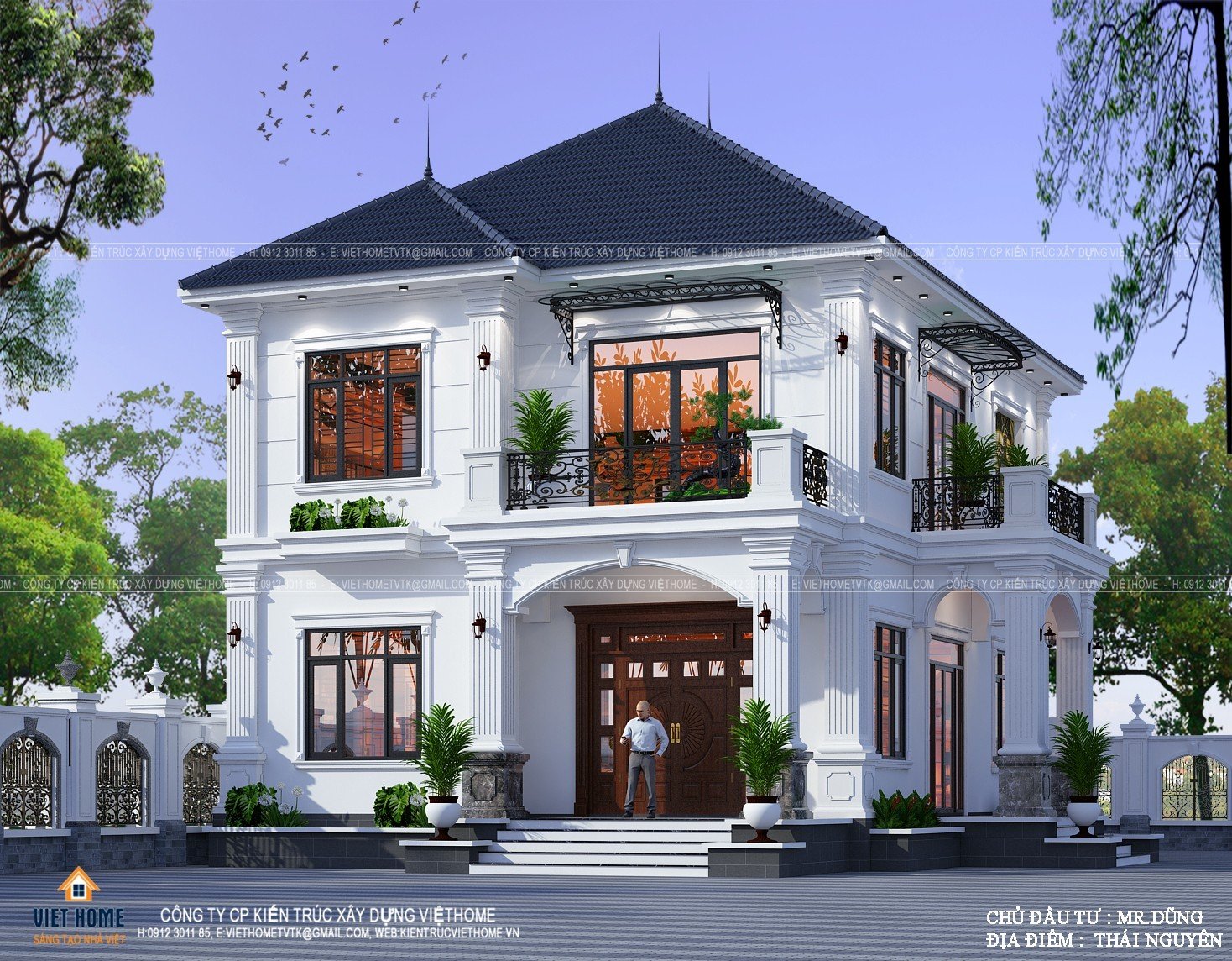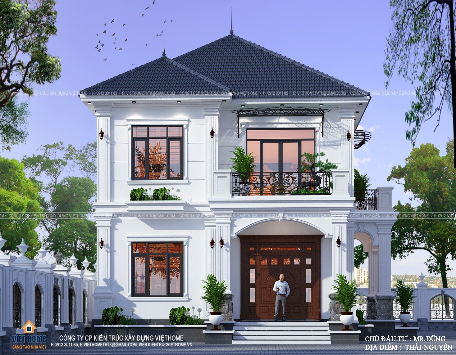 Xuýt xoa trước vẻ đẹp của biệt thự tân cổ điển 2 tầng mái Nhật - Chủ đầu tư: Anh Dũng, Thái Nguyên
